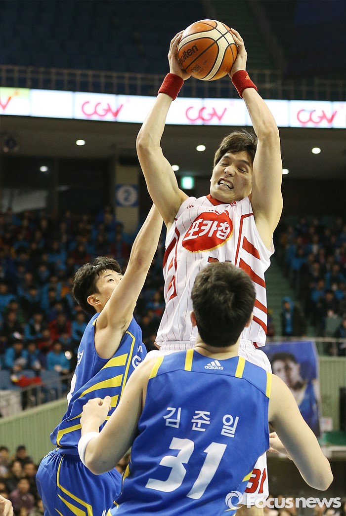 (서울=포커스뉴스) 24일 서울 잠실실내체육관에서 열린 2015-2016 프로농구 삼성-오리온 경기에서 오리온 장재석이 리바운드볼을 잡고 있다.