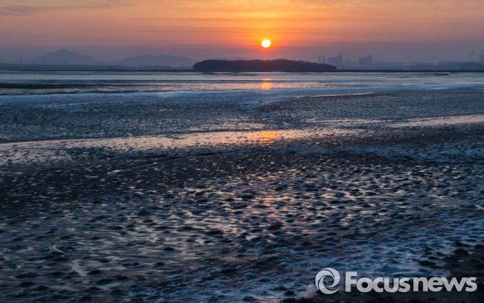 (강화=포커스뉴스) 한파경보가 발효된 24일 인천시 강화군 동검도 앞 바다와 갯벌도 꽁꽁 얼어붙어있다.