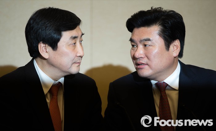 (서울=포커스뉴스) 새누리당 원유철(오른쪽), 더불어민주당 이종걸 원내대표가 24일 오후 서울 여의도 국회 귀빈식당에서 선거구획정안과 쟁정법안을 처리하기 위한 회동에 참석, 대화를 하고 있다.