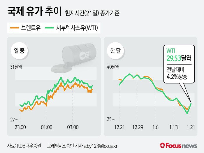 국제유가는 지난 21일(현지시간) 열린 유럽중앙은행(ECB)의 영향으로 반등 모멘텀을 만들었다. 마리오 드라기 총재가 "오는 3월 통화정책 방향성을 검토하겠다"고 발언, 추가 양적완화책에 대한 시장 기대감을 키워서다.