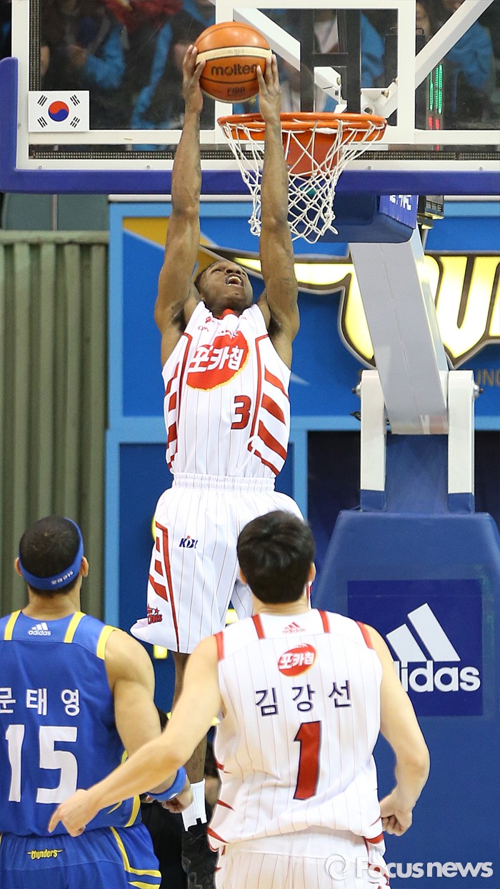 (서울=포커스뉴스) 24일 서울 잠실실내체육관에서 열린 2015-2016 프로농구 삼성-오리온 경기에서 오리온 조 잭슨이 덩크슛을 시도하고 있다.