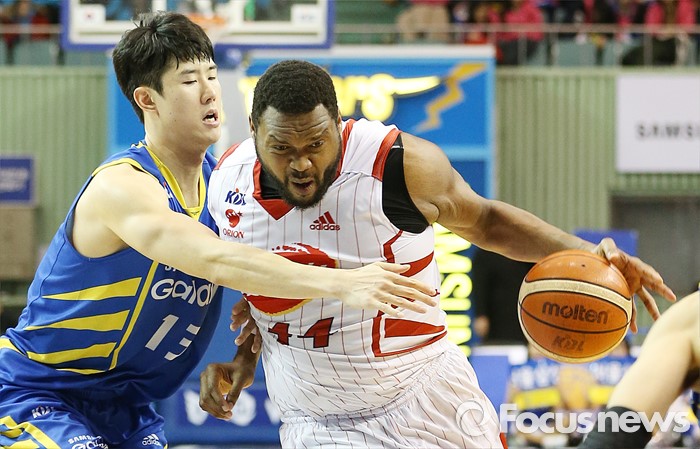 (서울=포커스뉴스) 24일 서울 잠실실내체육관에서 열린 2015-2016 프로농구 삼성-오리온 경기에서 오리온 제스퍼 존슨이 삼성 임동섭을 제치면서 돌파를 시도하고 있다.
