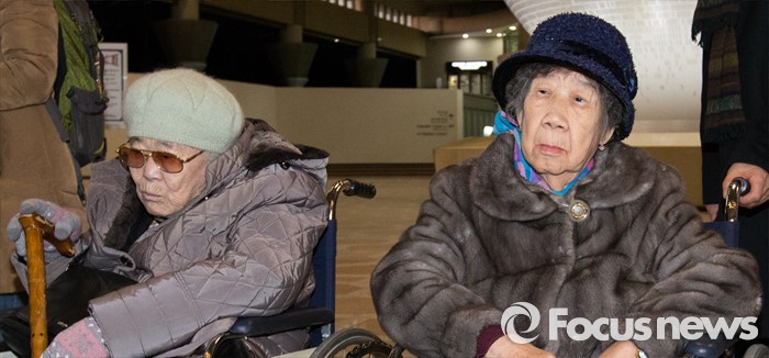 (서울=포커스뉴스) 지난 해 12월 28일 한일 위안부 문제 합의 이후 처음으로 일본을 방문하여 위안부 피해 참상을 증언하기 위해 위안부 피해자 이옥선(왼쪽부터), 강일출 할머니가 25일 오전 서울 김포공항에서 출국 전 대기하고 있다.