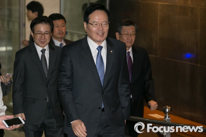 (서울=포커스뉴스) 정의화 국회의장이 25일 오전 서울 여의도 국회로 출근하며 취재진 질문을 받고 있다. 이날 새누리당 초·재선 의원 모임인 '아침소리'는 정 의장이 20대 총선 불출마 선언을 해야한다는 주장을 제기했다.