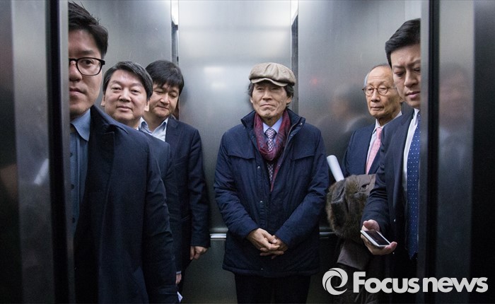 (서울=포커스뉴스) 25일 오전 서울시 마포구 국민의당 당사에서 열린 확대기조회의를 마친 안철수 의원과 공동위원장들이 여의도 의원회관에서 기자회견을 여는 김한길 의원을 만나기 위해 국민의당 당사를 빠져나가고 있다.