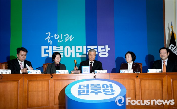 (서울=포커스뉴스) 25일 오전 서울 여의도 국회에서 열린 더불어민주당 1차 중앙선거대책위원회의에 참석한 김종인 위원장의 개의 선언을 하고 있다.