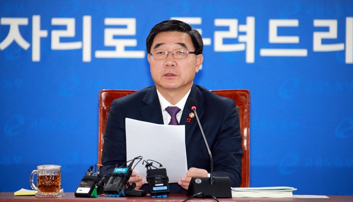 (세종=포커스뉴스) 이기권 고용노동부장관이 25일 오전 세종시 정부세종청사 고용노동부 대회의실에서 열린 전국기관장 회의에 참석해 모두발언을 하고 있다. <사진제공=고용노동부>