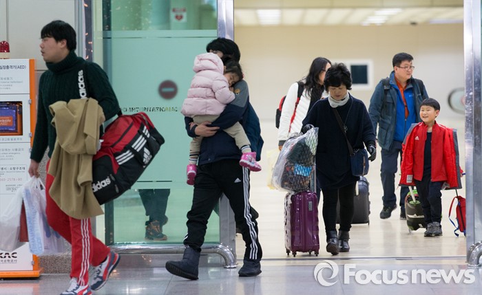 (서울=포커스뉴스) 폭설과 한파로 사흘째 운항이 중단됐던 제주공항에 갇혀있던 탑승객들이 25일 오후 서울 강서구 김포국제공항 국내선으로 입국하고 있다.