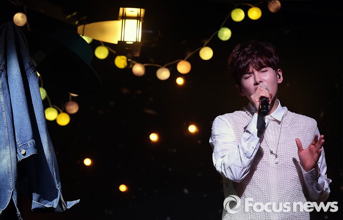 (서울=포커스뉴스) 25일 오후 서울 용산구 현대카드 언더스테이지에서 열린 미니앨범 '어린왕자' 쇼케이스에 참석한 가수 려욱이 신곡 '어린왕자'의 무대를 선보이고 있다.