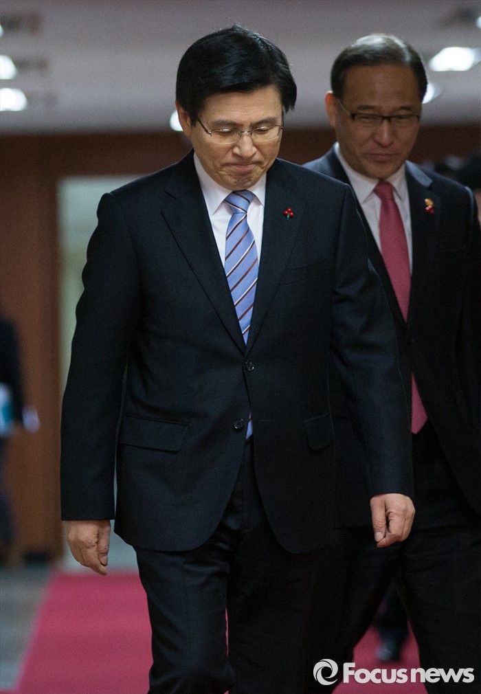 (서울=포커스뉴스) 황교안 국무총리가 26일 오전 서울 종로구 정부서울청사에서 국무회의에 참석하기 위해 입장하고 있다.