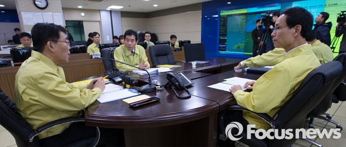 (세종=포커스뉴스) 26일 오전 세종시 정부세종청사 국토교통부 제주공항체류여객 비상수송대책본부에서 관계자들이 제주도 인근 운항상황을 점검하고 있다.