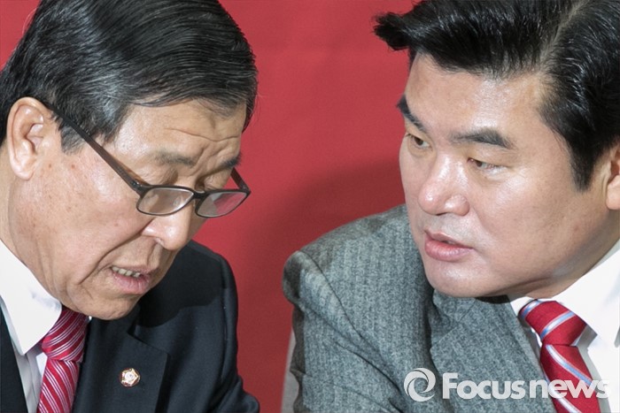 이에 앞서 25일 부산시의회 브리핑룸에서 열린 허 전 시장의 부산 사하갑 출마 기자회견장에는 같은 당 김장실(비례) 의원과 김척수 부산시 대외협력 정책고문 측 지지자 50여 명이 난입해 시위를 벌였다. 허 전 시장은 이들의 항의에 출마 선언을 하지 못하고 쫓기듯 회견장을 벗어났다.원유철(오른쪽) 새누리당 원내대표와 황진하 사무총장이 26일 오전 서울 여의도 국회에서 열린 원내대책회의에 참석해 대화하고 있다. 2016.01.26 박철중 기자