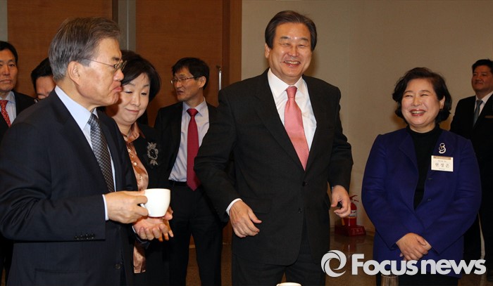| △ 경제 어젠다 회의 자리한 김무성-문재인-현정은 |