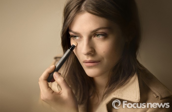 스틱 타입의 신제품은 2월1일부터 삼성동 코엑스몰에 위치한 버버리 뷰티 박스와 버버리 공식 온라인스토어에서 판매된다.모델 엠버 앤더슨이 버버리의 캐시미어 컨실러로 메이크업을 하고 있다. <사진제공=버버리>