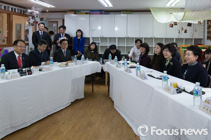 (서울=포커스뉴스) 유일호 경제부총리 겸 기획재정부 장관이 26일 오전 서울 강서구 보라유치원에 방문해 유치원 관계자 및 학부모들과 간담회를 열고 있다.
