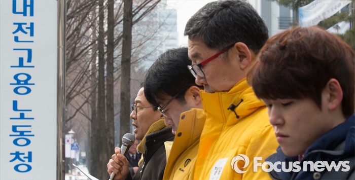 (대전=포커스뉴스) 26일 오전 대전 서구 대전지방고용노동청 앞에서 정의당 대전시당원들이 기자회견을 열고 쉬운해고 취업규칙 변경 및 정부지침 철회를 촉구하고 있다.