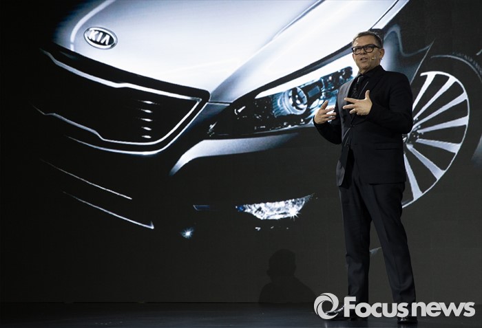 (서울=포커스뉴스) 26일 오전 서울 강남구 그랜드 인터컨티넨탈 서울 파르타스에서 열린 '기아차 올 뉴 K7 신차발표회'에서 피터 슈라이어 현대기아차 디자인 총괄 사장이 발표를 하고 있다.