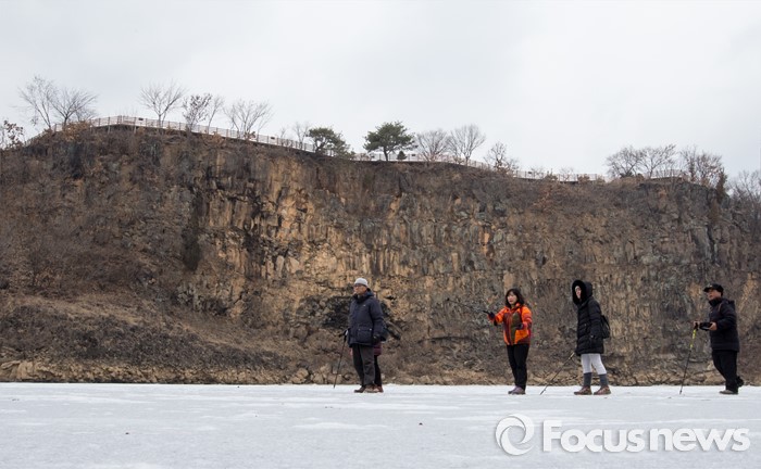 (철원=포커스뉴스) 26일 오전 강원 철원군 한탄강 일대에서 여행객들이 얼음트래킹을 즐기고 있다.