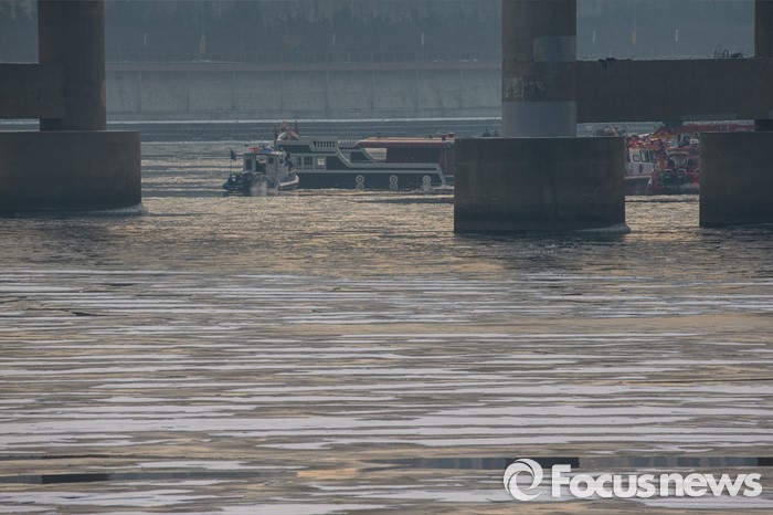 (서울=포커스뉴스) 26일 오후 서울 한강 영동대교 인근을 지나던 한강유람선이 침수, 구조대원들이 구조활동과 견인 작업을 하고 있다.