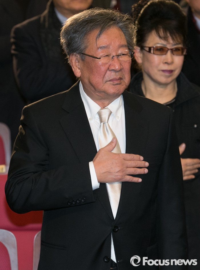 (서울=포커스뉴스) 26일 오후 서울 여의도 국회 의원회관에서 열린 15회 대한민국 국회대상 시상식에 공로상을 수상하는 방송인 최불암이 국기에 대한 경례를 하고 있다.