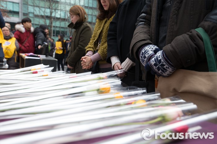 | △ 제 1211차 정기 수요집회, 헌화하는 시민들 |