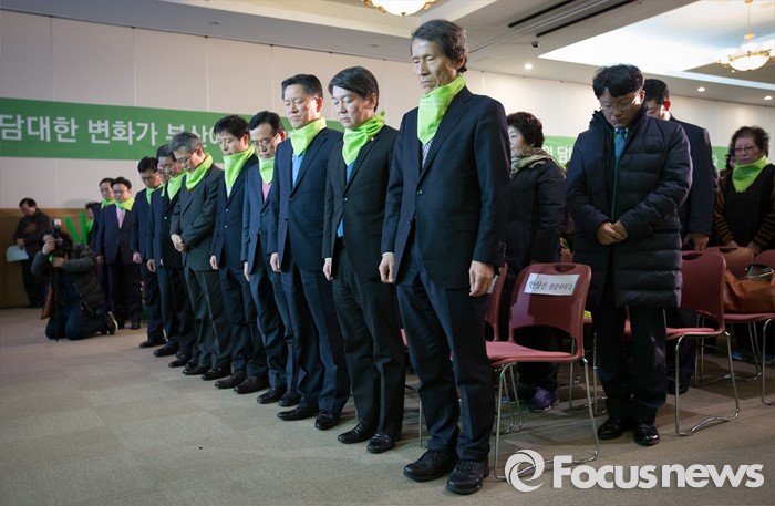 (부산=포커스뉴스) 국민의당 한상진 공동 창준위원장과 안철수 의원이 26일 오후 부산 해운대구 벡스코에서 열린 국민의당 부산시당 창당대회에서 묵념을 하고 있다