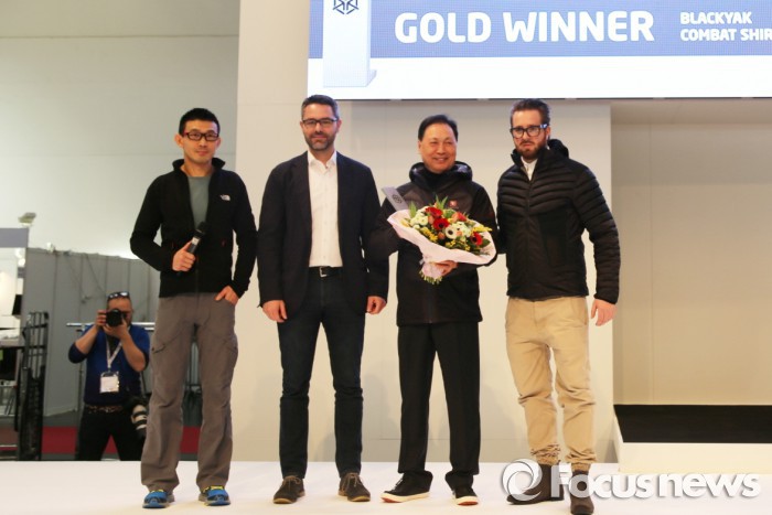 (서울=포커스뉴스) 아웃도어 브랜드 블랙야크가 독일 뮌헨에서 열린 세계 최대 스포츠박람회 'ISPO 2016'에서 글로벌 부문 황금상(Gold Winner) 수상을 포함해 11관왕을 차지했다. 단일 브랜드가 11개 부문을 수상한 것은 ISPO 역대 처음이다.