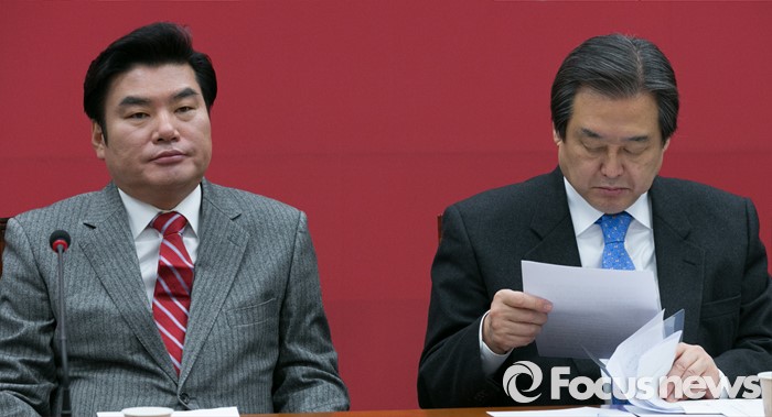 김 대표의 '권력자' 발언은 당시 새누리당의 비상대책위원장을 맡고 있던 박근혜 대통령을 겨냥한 것으로 풀이돼 파문이 일고 있다.김무성(오른쪽) 새누리당 대표와 원유철 원내대표가 27일 오전 서울 여의도 국회에서 열린 최고중진연석회의에 참석해, 각각 자리에 앉아 있다. 2016.01.27 박철중 기자