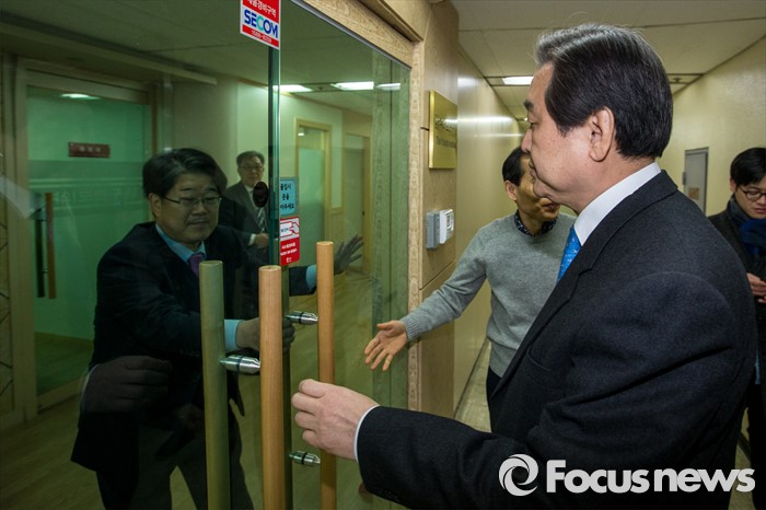 (서울=포커스뉴스) 김무성 새누리당 대표가 여의도연구원 이사회에 자리하기 위해 27일 오전 서울 영등포구 여의도연구원으로 들어서고 있다.