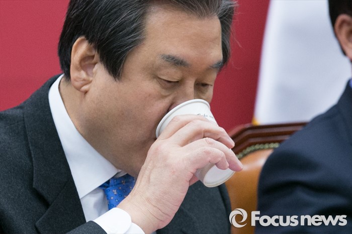 김 대표의 '권력자' 발언은 당시 새누리당의 비상대책위원장을 맡고 있던 박근혜 대통령을 겨냥한 것으로 풀이돼 파문이 일고 있다.(서울=포커스뉴스) 김무성 새누리당 대표가 27일 오전 서울 여의도 국회에서 열린 최고중진연석회의에 참석해 물을 마시고 있다. 2016.01.27 박철중 기자