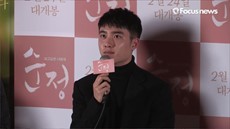 (서울=포커스뉴스) 배우 도경수가 지난 26일 오후 서울 성동구 CGV왕십리에서 열린 영화 '순정' 언론시사회에 참석해 김소현과 우산 키스신을 찍은 소감을 전했다.