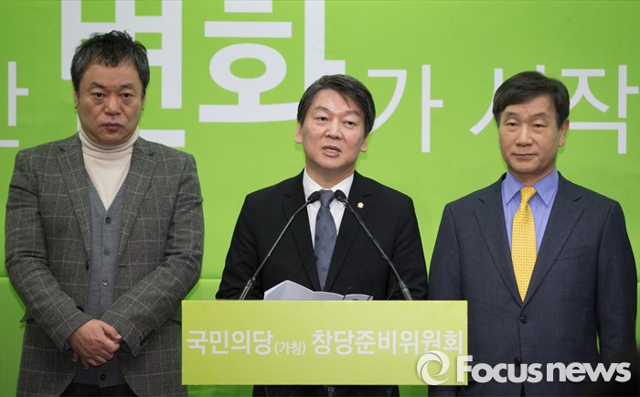 (서울=포커스뉴스) 안철수 의원이 27일 오전 서울 마포구 국민의당 당사에서 국민의당 언론특보로 선임 된 한명규 코라오 그룹 부회장과 홍보위원장에 선임 된 박찬정 전 브랜드 앤 컴퍼니 상무이사를 소개하고 있다.