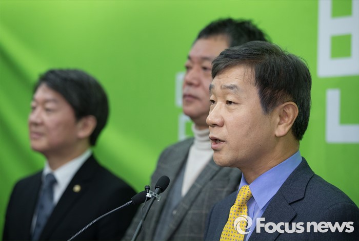 (서울=포커스뉴스) 국민의당 언론특보로 선임 된 한명규 코라오 그룹 부회장이 27일 오전 서울 마포구 국민의당 당사에서 입당 인사를 하고 있다.