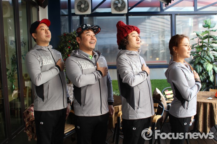 한편, 독도사랑운동본부는 오는 2월22일 국회헌정기념관에서 제3회 독도골든벨을 진행한다.왼쪽부터 독도홍보대사인 개그맨 정진욱, 이재형, 한현민과 가수 신비가 협찬의상을 입고 가슴에 손을 얹고 있다. <사진제공=독도사랑운동본부> 2016.1.27. 김현이 인턴기자