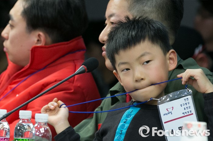(서울=포커스뉴스) 27일 오후 서울 여의도 국회 의원회관에서 새누리당 청년 공천 설명회에 참석한 한 어린이가 지루한 듯, 장난치고 있다.