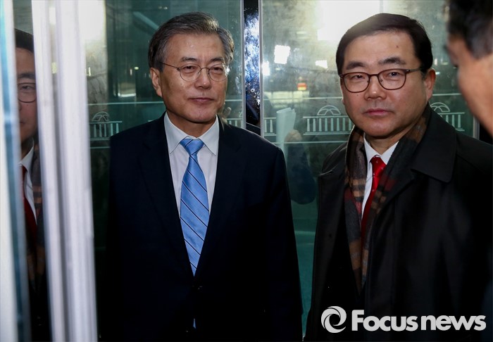 (서울=포커스뉴스) 문재인 더불어민주당 대표가 27일 오후 서울 여의도 국회 의원회관에서 열린 중앙위원회의를 마친 뒤 승강기에 올라 이동하고 있다.