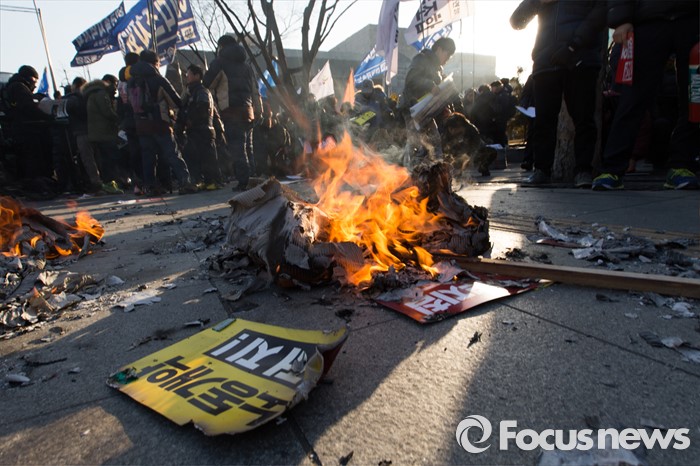 | △ 노동개악 저지 피켓 태우는 민주노총 |