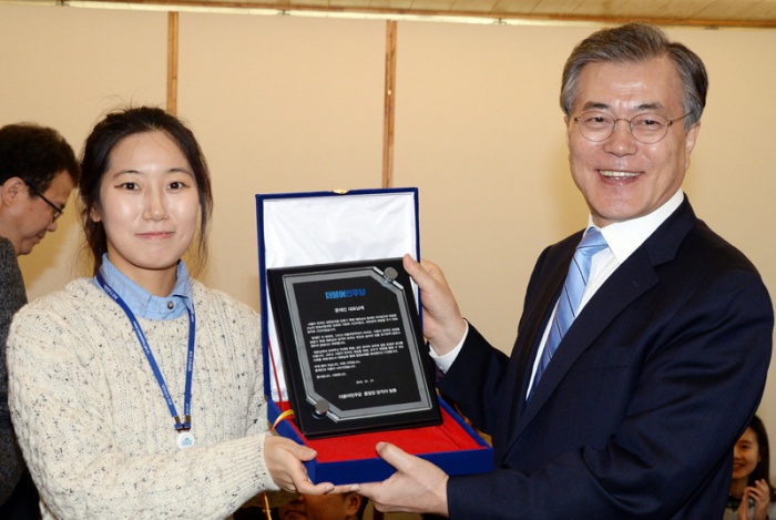 | △ 감사패 전달받는 문재인 대표 |