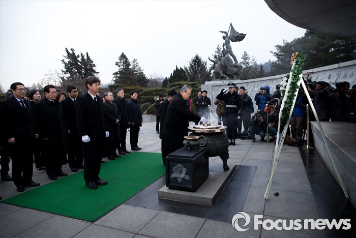 (서울=포커스뉴스) 28일 오전 서울 동작구 국립서울현충원에서 김종인 선거대책위원장 겸 비대위원장이 현충탑 참배를 하고 있다.