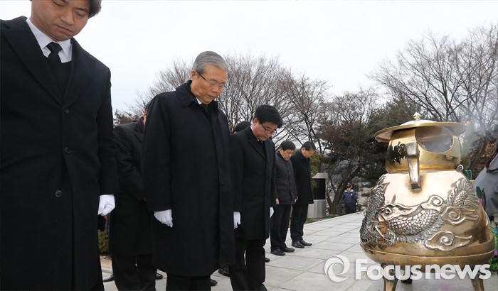 (서울=포커스뉴스) 28일 오전 서울 동작구 국립현충원을 찾은 김종인 더블어민주당 비상대책위원장이 비대위원들과 이승만 전 대통령 묘역을 참배하고 있다.