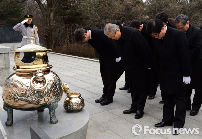 (서울=포커스뉴스) 28일 오전 서울 동작구 국립서울현충원에서 김종인 선거대책위원장 겸 비대위원장이 박정희 전 대통령 묘역 참배를 하고 있다.