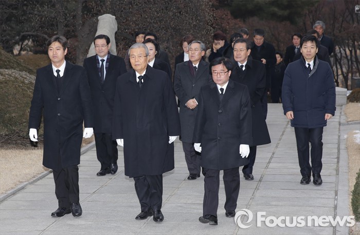 (서울=포커스뉴스) 28일 오전 서울 동작구 국립현충원을 찾은 김종인 더블어민주당 비상대책위원장이 비대위원들과 이승만 전 대통령 묘역으로 발걸음을 옮기고 있다.
