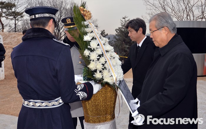 (서울=포커스뉴스) 28일 오전 서울 동작구 국립서울현충원에서 김종인 선거대책위원장 겸 비대위원장이 김영삼 전 대통령 묘역 참배를 하고 있다.