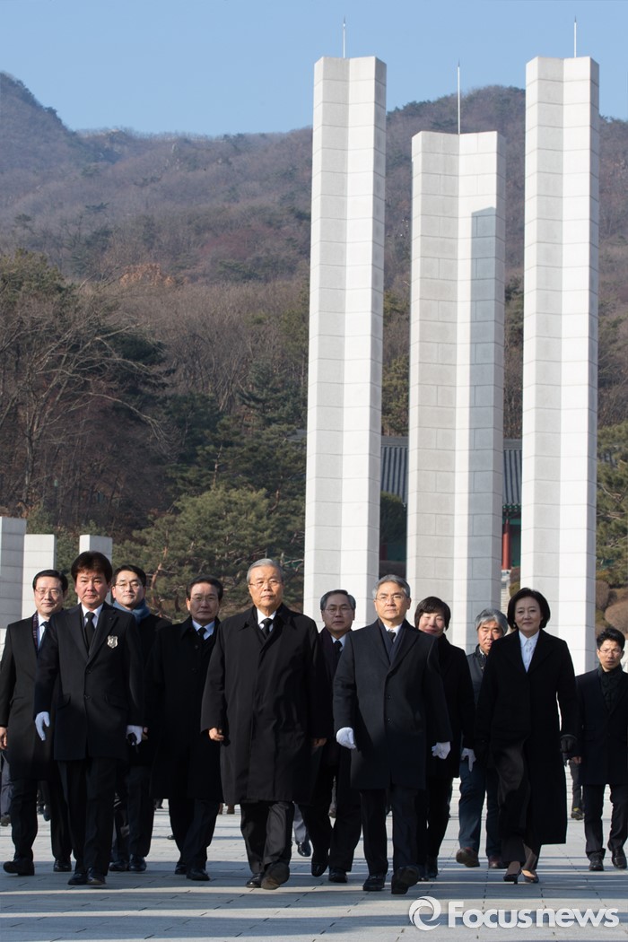(서울=포커스뉴스) 28일 오전 서울 강북구 국립 4.19 묘지에서 김종인 선거대책위원장 겸 비대위원장이 사월 학생 혁명 기념탑 참배를 마치고 떠나고 있다.
