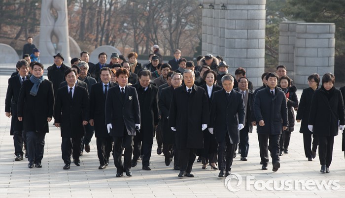 (서울=포커스뉴스) 28일 오전 서울 강북구 국립 4.19 묘지에서 김종인 선거대책위원장 겸 비대위원장이 사월 학생 혁명 기념탑 참배를위해 입장하고 있다.