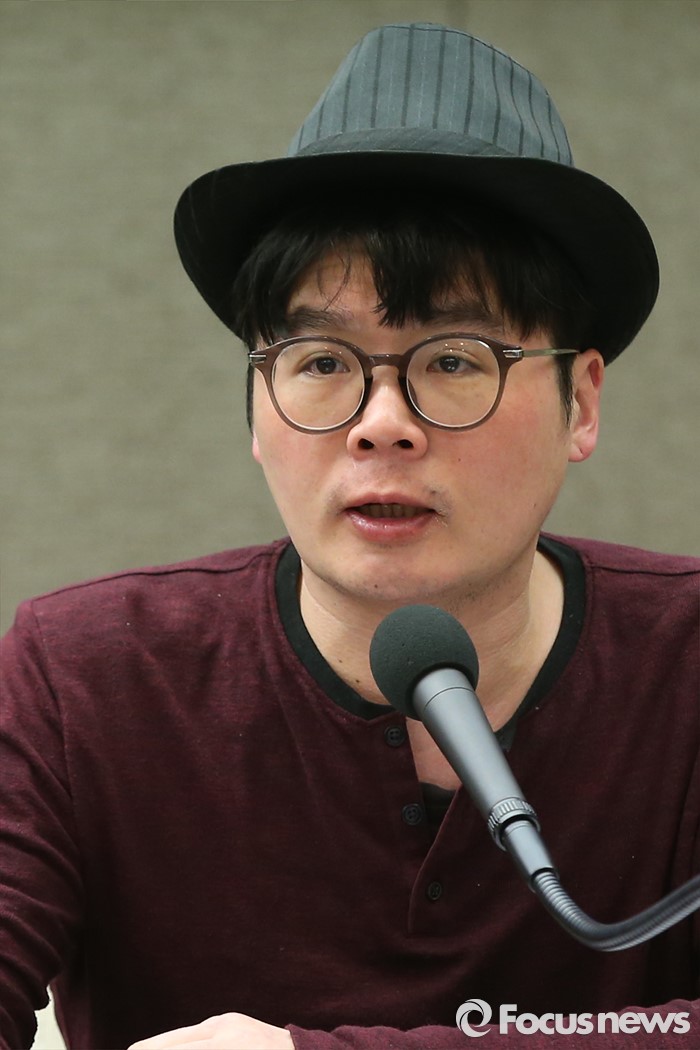 (서울=포커스뉴스) 28일 오전 서울 중구 프레스센터에서 열린 '제13회 한국대중음악상 기자회견' 에 참석한 김작가 선정위원이 취재진의 질문에 답하고 있다.