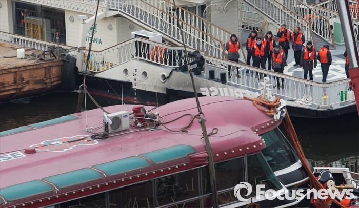 (서울=포커스뉴스) 28일 오후 서울 한강 영동대교 인근에서 예인업체 관계자들이 침수된 이랜드 크루즈 유람선 인양 작업을 지켜보고 있다.
