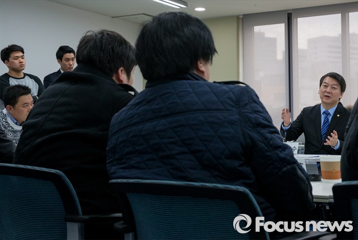 (서울=포커스뉴스) 28일 오후 서울 강남구 창업지원센터에서 열린 '국민의당-핀테크 기업인 간담회'에 참석한 안철수 인재영입위원장이 인사말을 하고 있다.