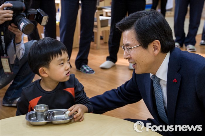 (서울=포커스뉴스) 만3-5세 유아에게 공통적으로 제공하는 교육, 보육 과정인 누리과정 예산 파행으로 보육대란이 이어지고 있는 28일 오후 서울 종로구 한 어린이집을 찾은 황교안 국무총리가 어린이들과 대화를 나누고 있다.