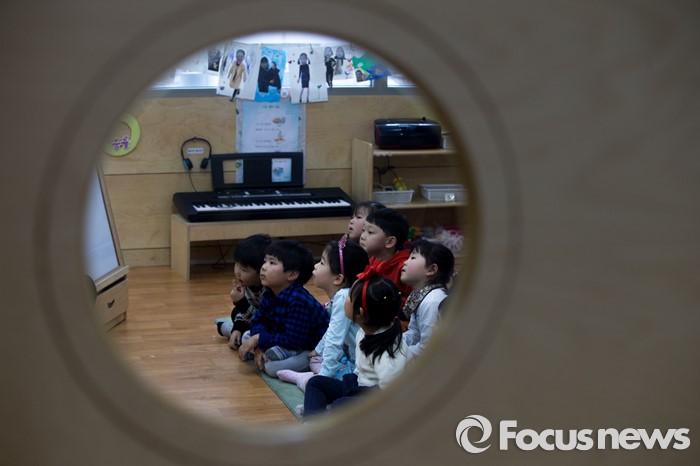 (서울=포커스뉴스) 만3-5세 유아에게 공통적으로 제공하는 교육, 보육 과정인 누리과정 예산 파행으로 보육대란이 이어지고 있는 28일 오후 서울 종로구 한 어린이집에서 어린이들이 공부 하고 있다.